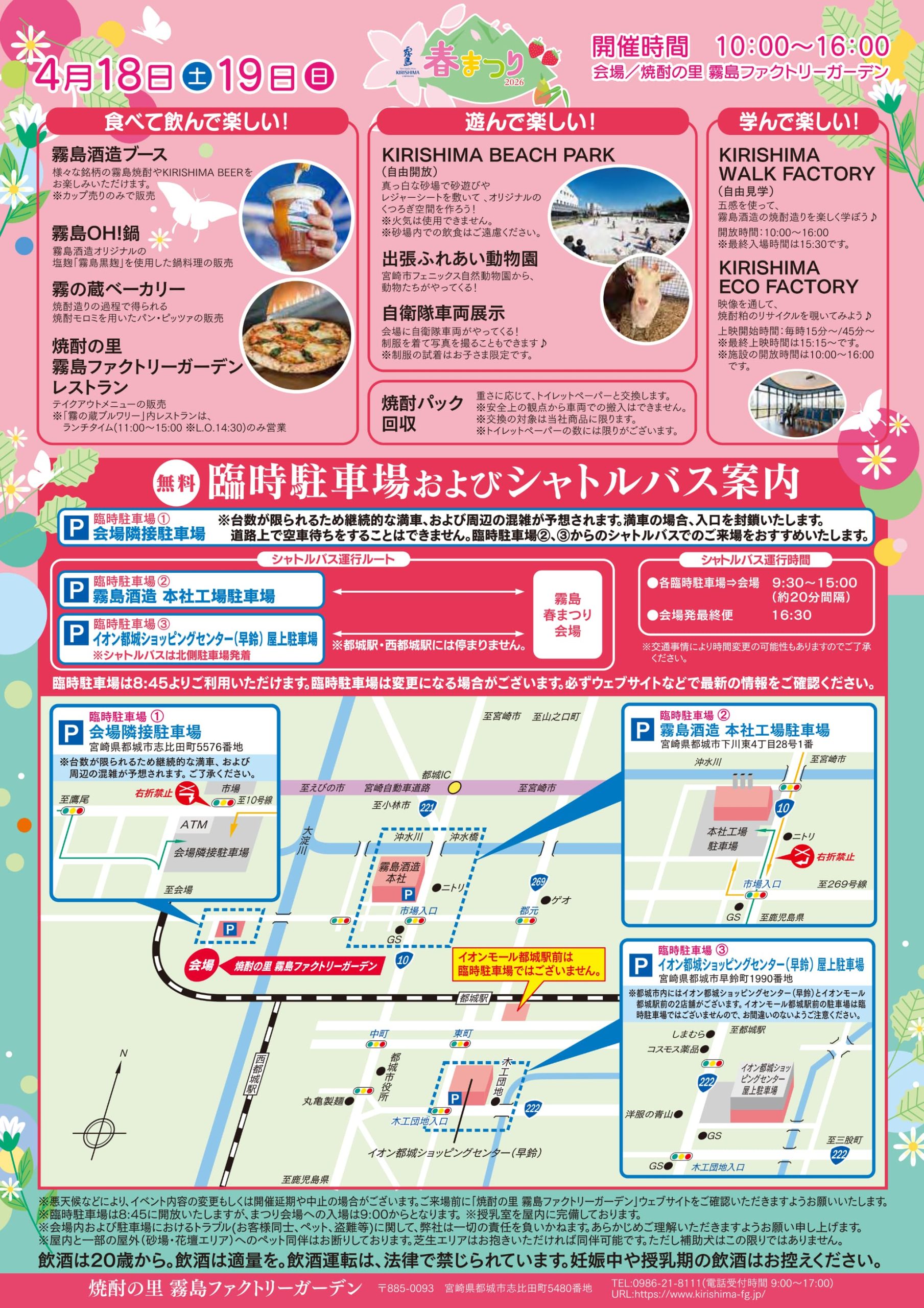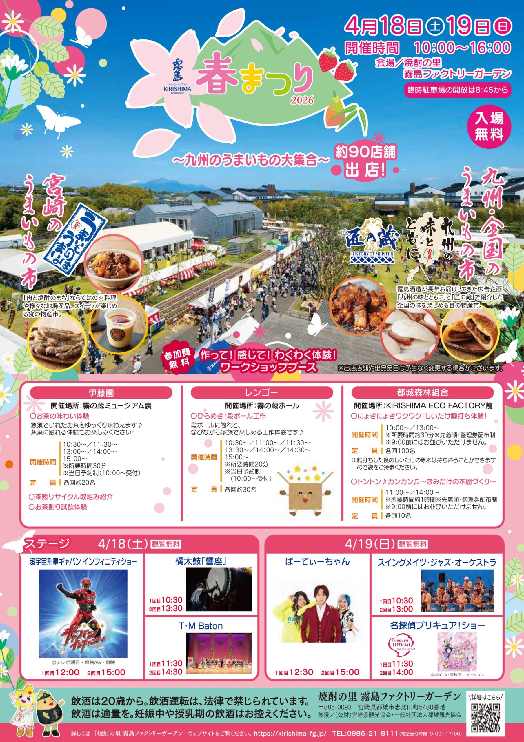 4月18日(土)、19日(日)の2日間、「焼酎の里 霧島ファクトリーガーデン」にて、「霧島春まつり2026~九州のうまいもの大集合~」を開催いたします。